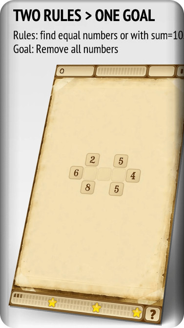 IMPORTANT! In the “Classic” and “Advanced” gameplays pair can be formed with numbers located on adjacent lines. In the first row the number should be as the last one (but after it can also be an empty cells) and int the second line the number should be as the first one (but before it can also be an empty cells).